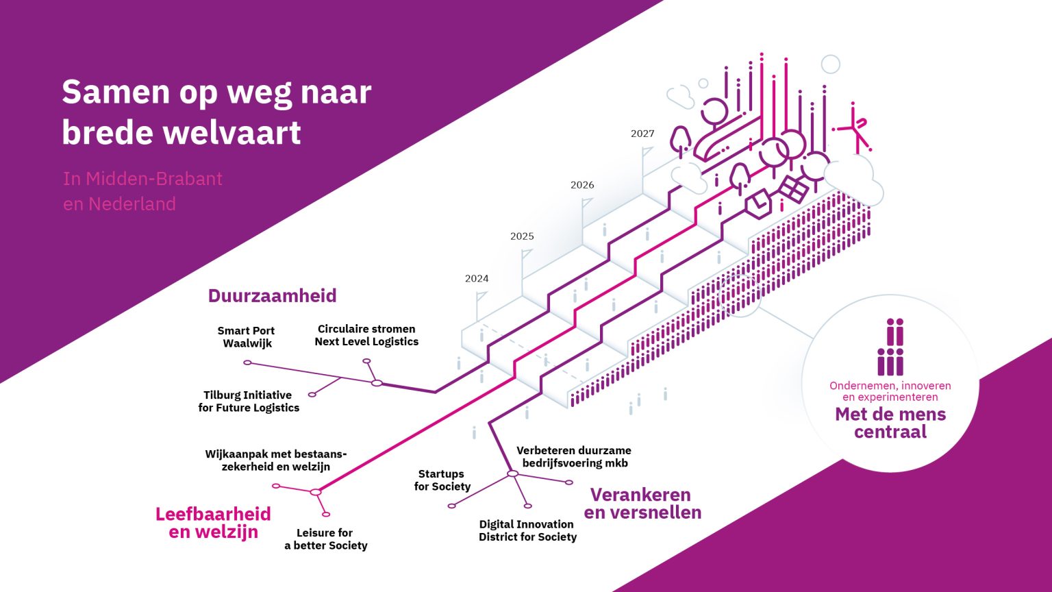 De Regio Deal Midden-Brabant loopt van november 2023 tot en met december 2027. De acht projecten zijn: